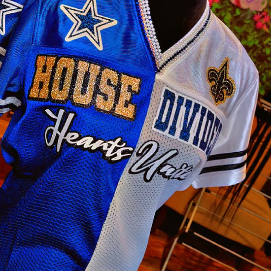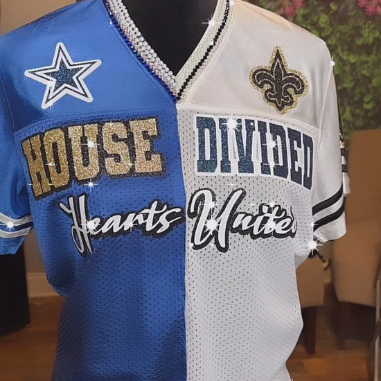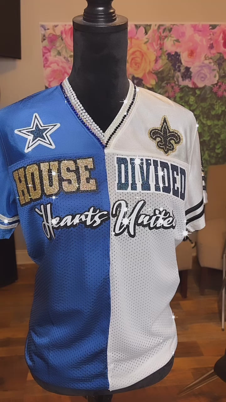 This custom-made House Divided Split Cut n Sew Jersey is perfect for showing off your team loyalty. Made with high-quality materials, this jersey is designed for both comfort and style. Wear it to the big game or while watching from home. Show your support in a unique and fashionable way.